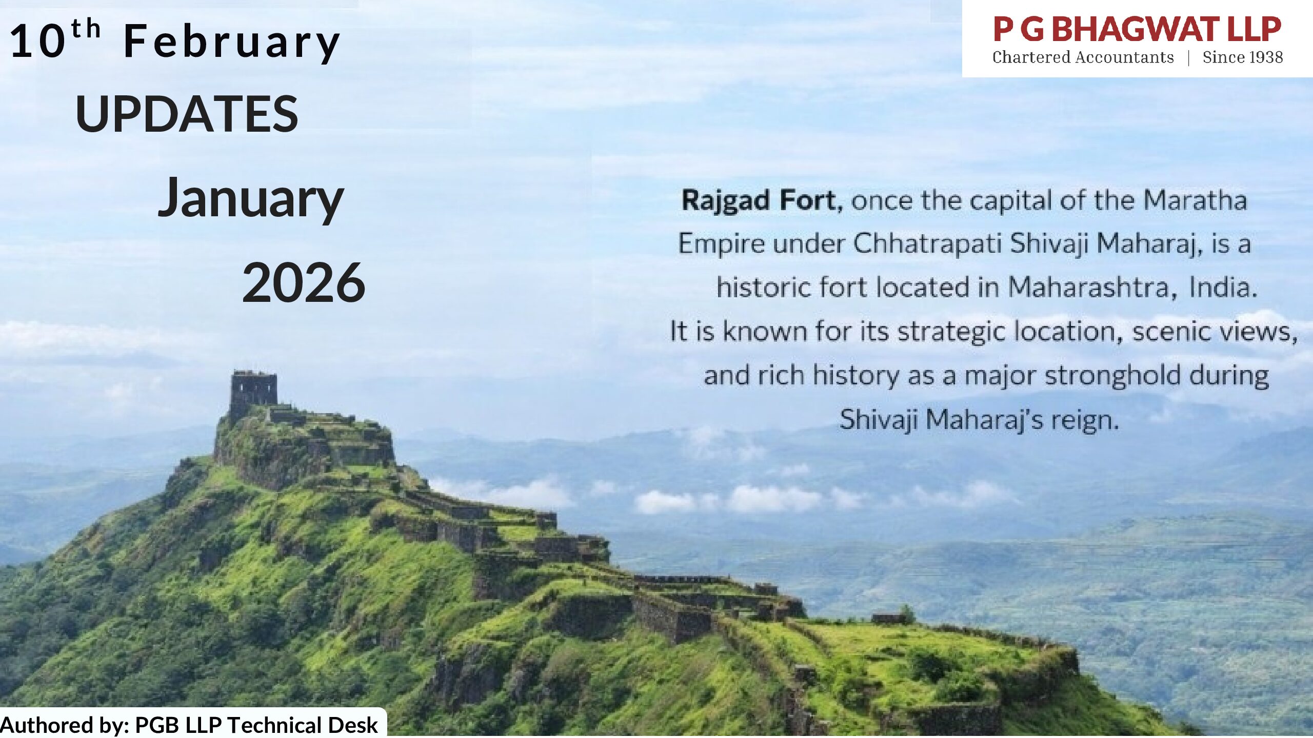 To help you remain up-to-date with the ever-evolving world of auditing, accounting, taxes, and labour laws, P G BHAGWAT LLP proudly presents monthly updates. Our goal is to offer valuable insights that will help you stay on top of your work, role, or domain by providing information on the latest developments in your field. For detailed information and/or queries, please do get in touch with us at updates@pgbhagwatca.com.